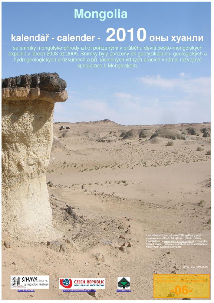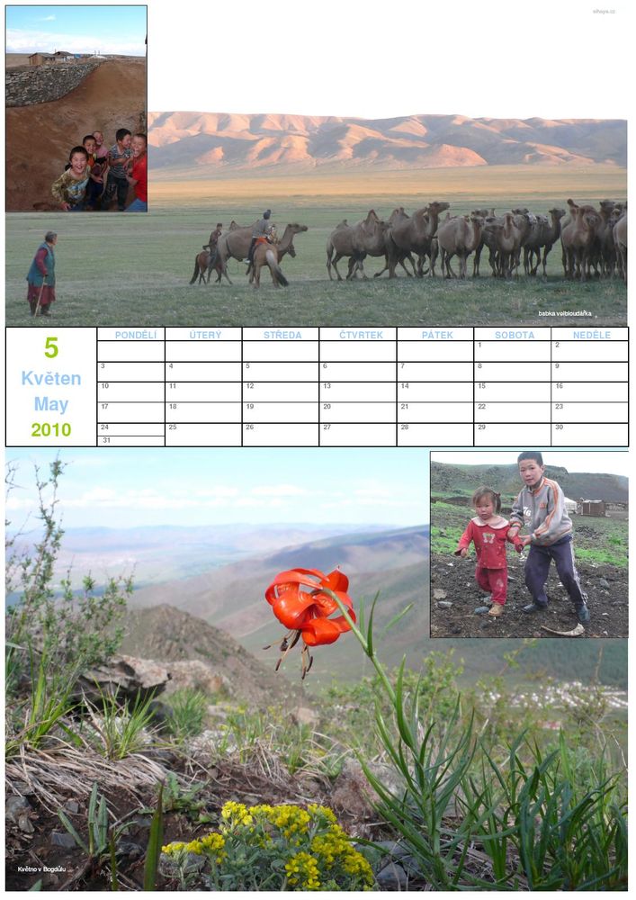 Kalendář 2010 společnosti SIHAYA je souborem fotografií z devíti expedic do Mongolska (z let 2003 až 2008, dvě fotografie z roku 2009).